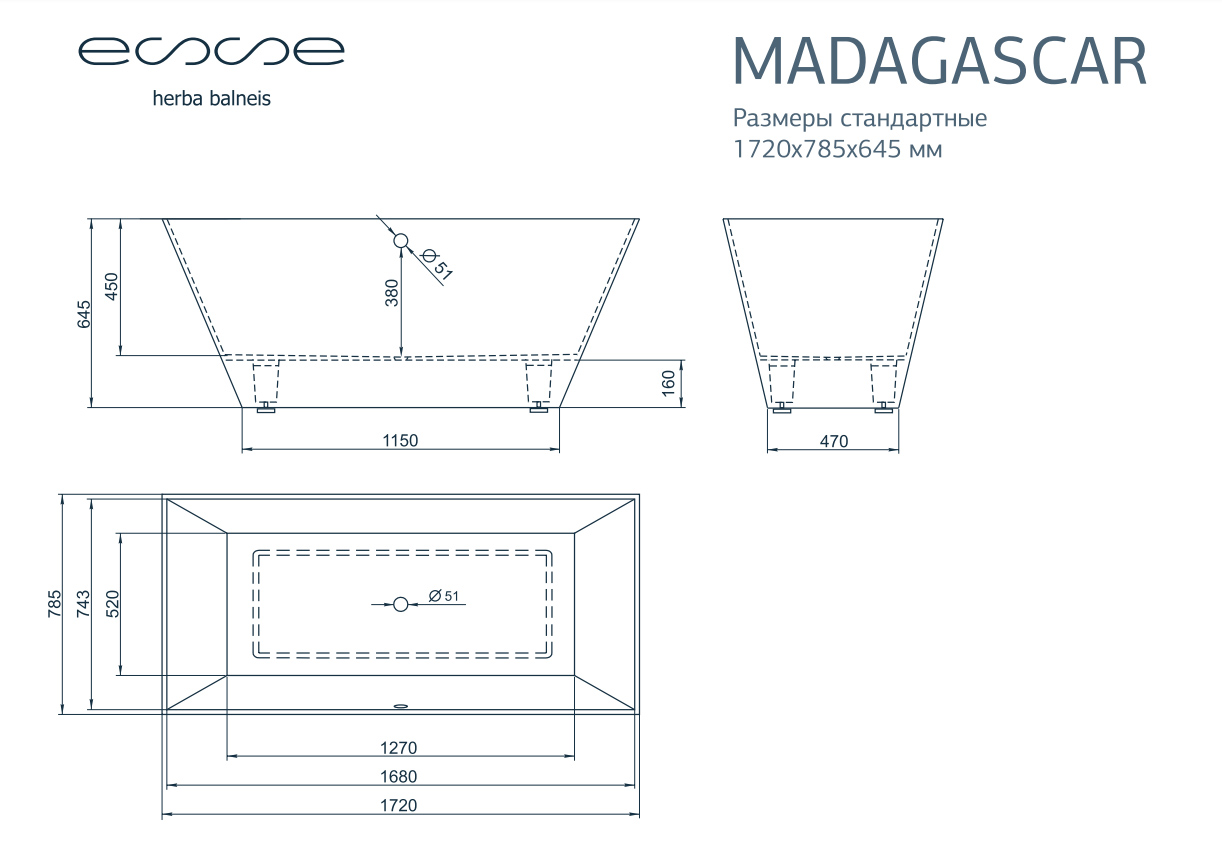 Ванна из искусственного камня ESSE Madagascar 172x78,5 см EMAD1720
