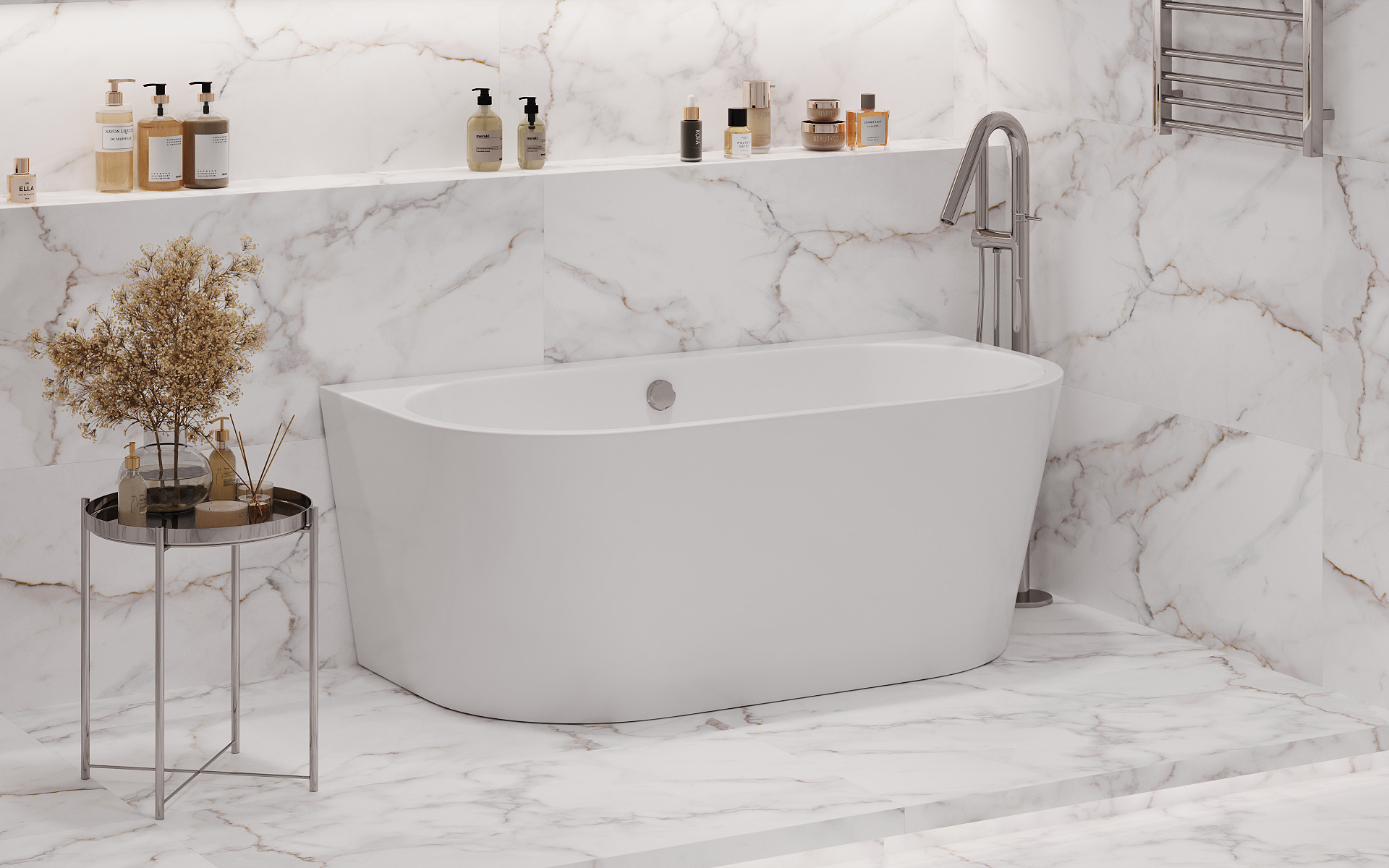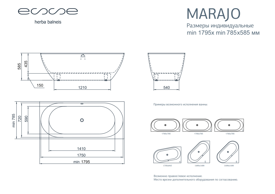 Ванна из искусственного камня ESSE Marajo от 179,5х78,5 см с интегрированной панелью EMAR1900