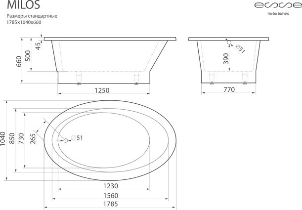 Ванна из искусственного камня ESSE Milos 178,5x104 см EMIL1785