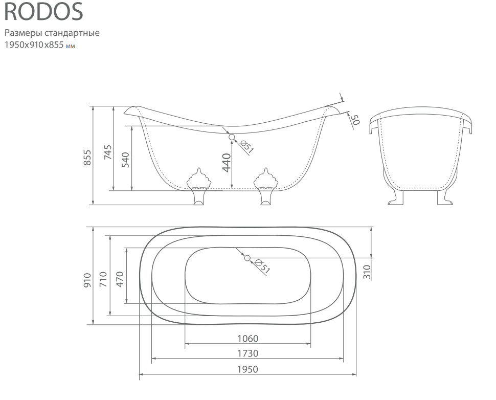 Ванна из искусственного камня ESSE Rodos 195x91 см EROD1950