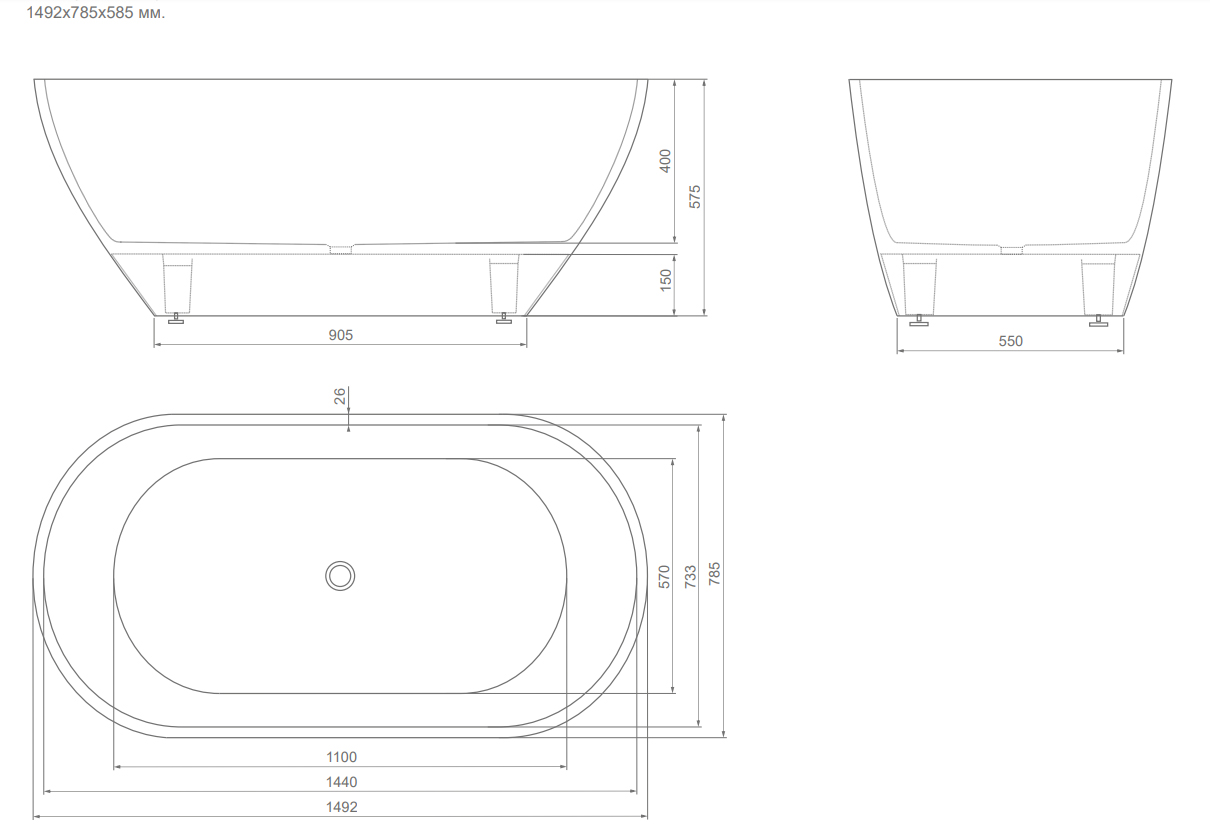 Ванна из искусственного камня ESSE Sakhalin 149,2х78,5 см ESAK1492