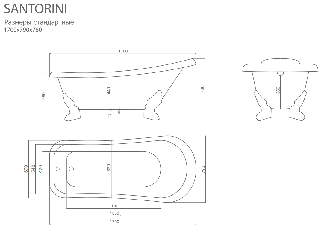 Ванна из искусственного камня ESSE Santorini 170x79 см ESAN1700