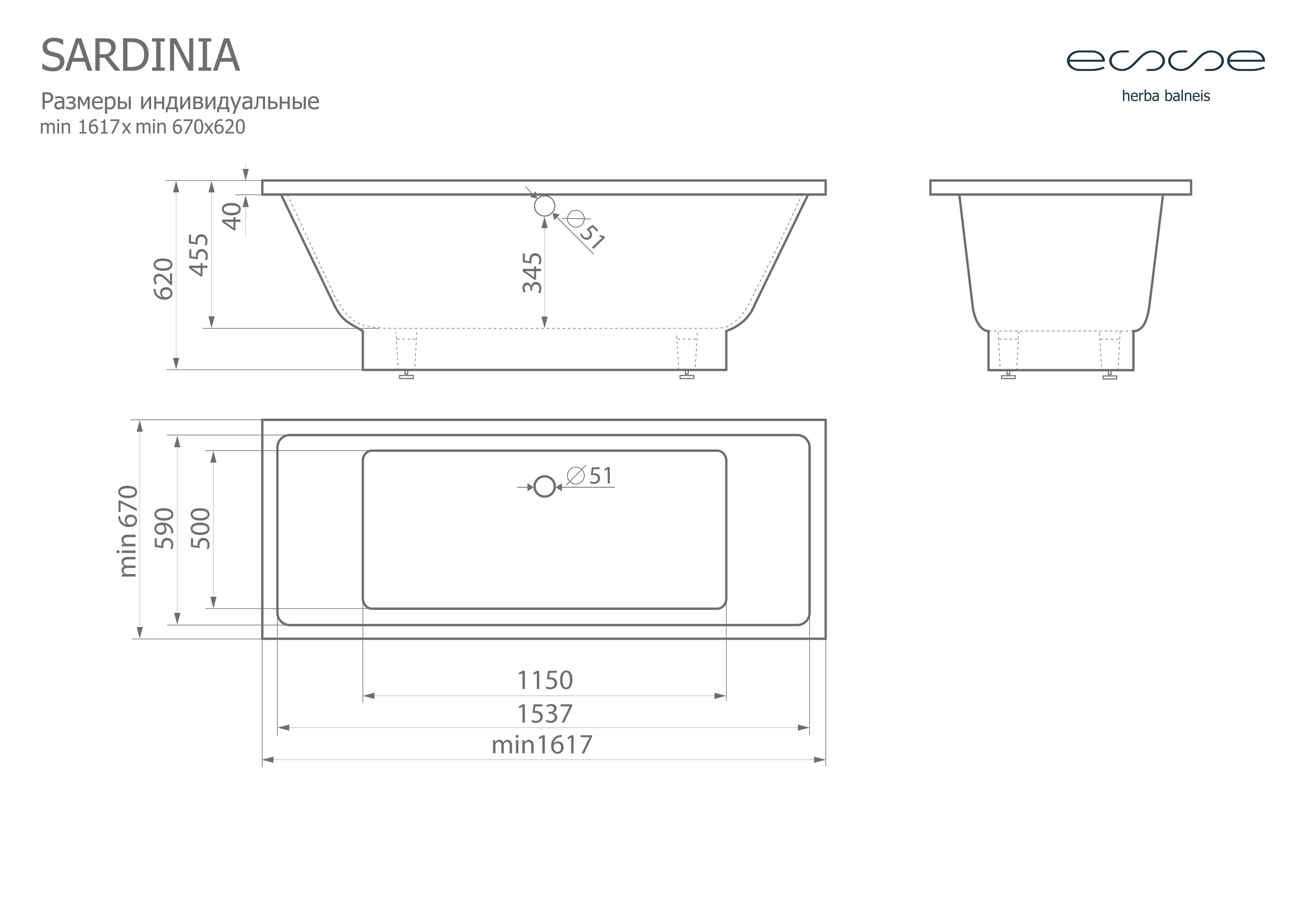 Ванна из искусственного камня ESSE Sardinia 161,7х67 см ESAR1617