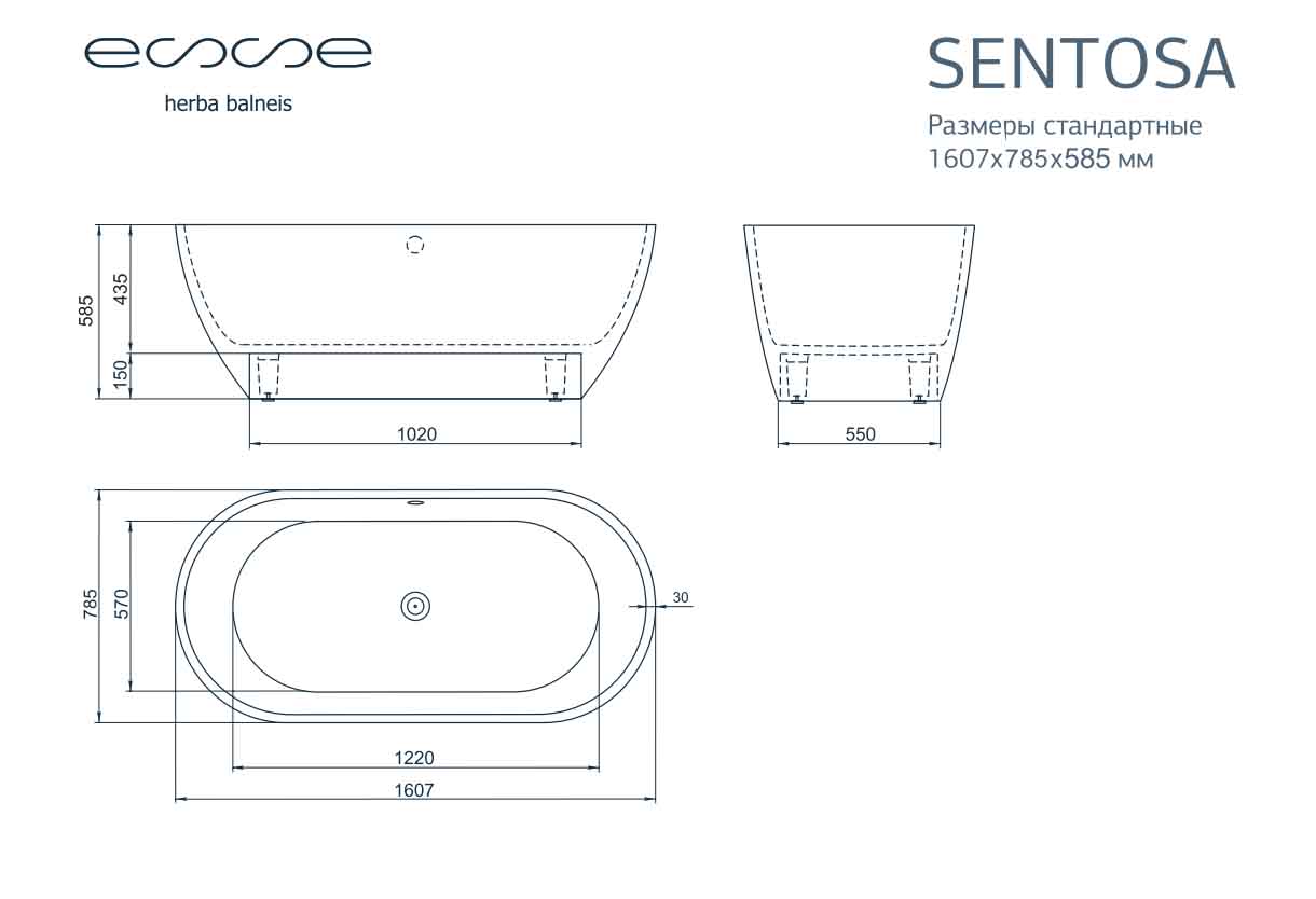 Ванна из искусственного камня ESSE Sentosa 160,7х78,5 см ESEN1607