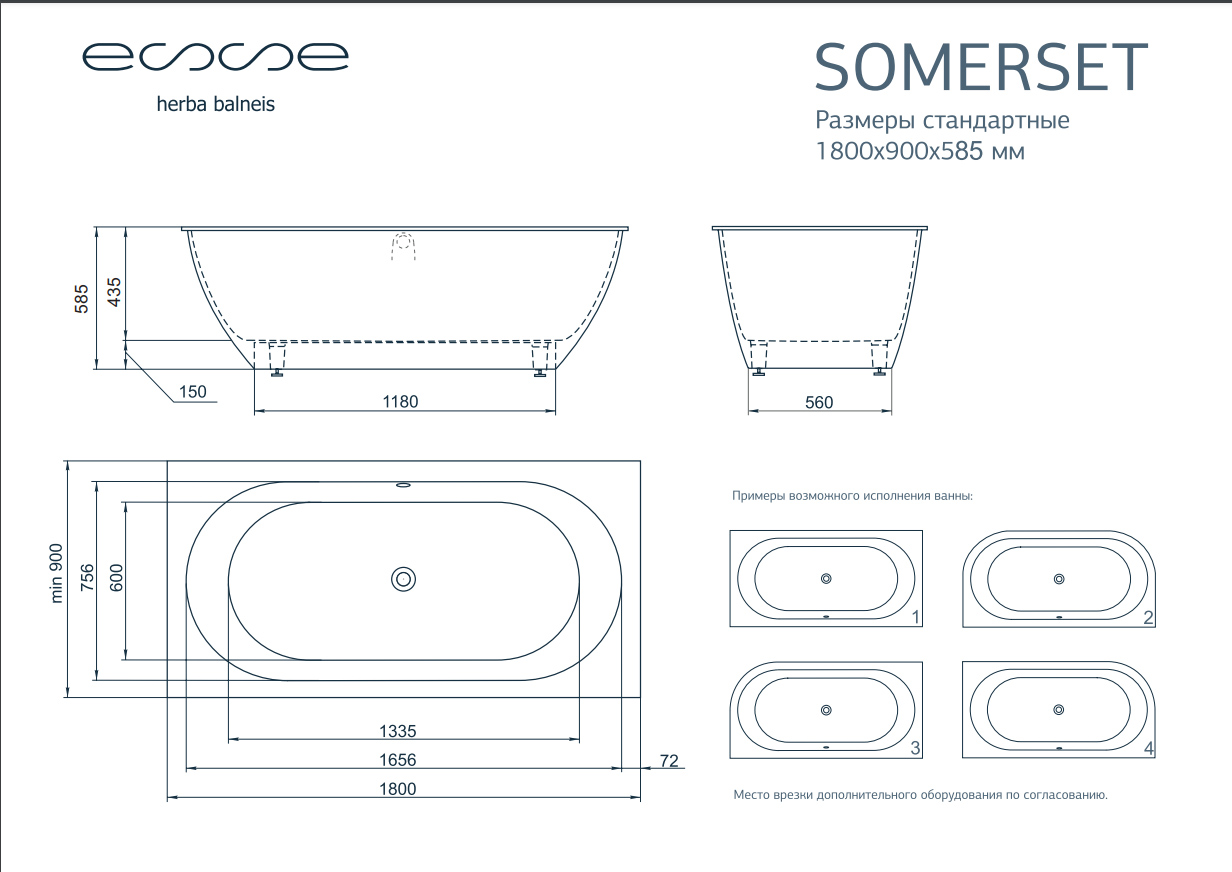 Ванна из искусственного камня ESSE Somerset 180x90 см (4 исполнения) ESOM1800