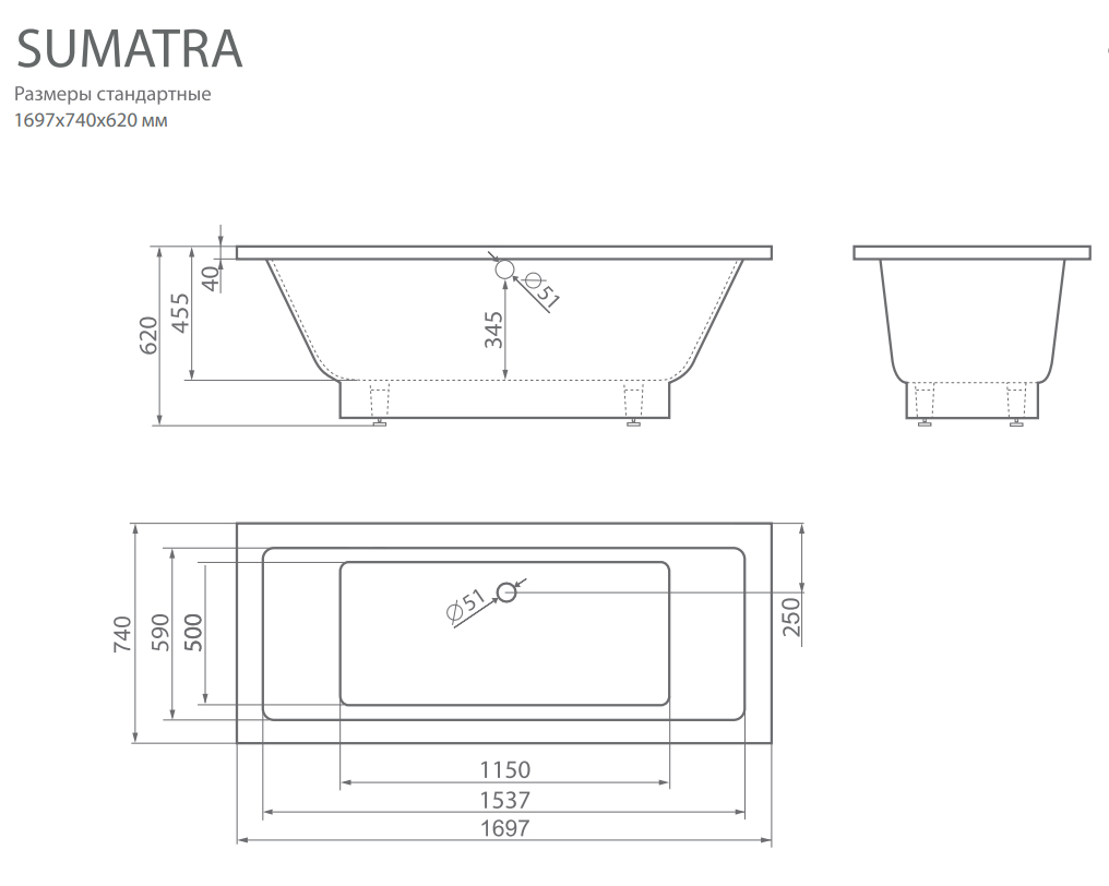 Ванна из искусственного камня ESSE Sumatra 170х74 см ESUM1697