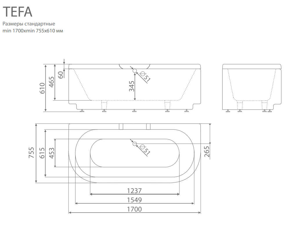 Ванна из искусственного камня ESSE Tefa 170х75,5 см ETEF1700