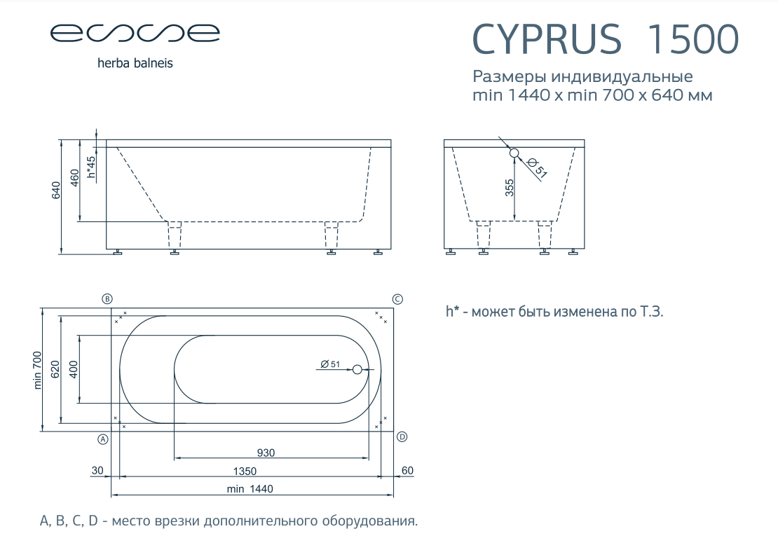 Ванна из искусственного камня ESSE Timor 174,5х77,5 см ETIM1745