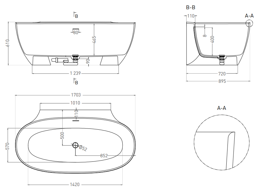 | Оснащение | Интегрированный слив-перелив, сифон, донный клапан Click-Clack в цвет ванны |