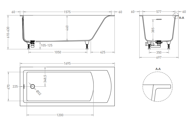 | Оснащение | Регулируемые ножки, интегрированный слив-перелив, сифон, донный клапан Click-Сlack в цвет ванны |