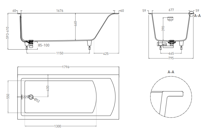 | Оснащение | Регулируемые ножки, интегрированный слив-перелив, сифон, донный клапан Click-Сlack в цвет ванны |