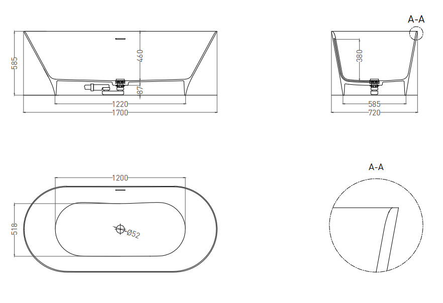 | Оснащение | Интегрированный слив-перелив, донный клапан Click-Clack в цвет ванны, сифон |
