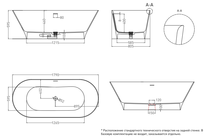| Оснащение | Интегрированный слив-перелив, донный клапан Click-Clack в цвет ванны, сифон |