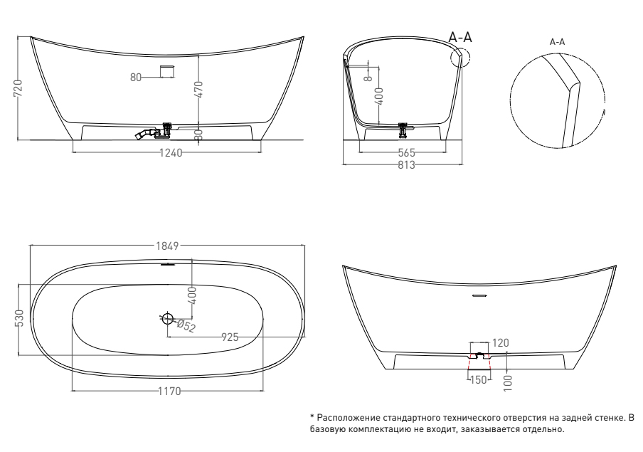 | Оснащение | Интегрированный слив-перелив, донный клапан Click-Clack в цвет ванны, сифон |