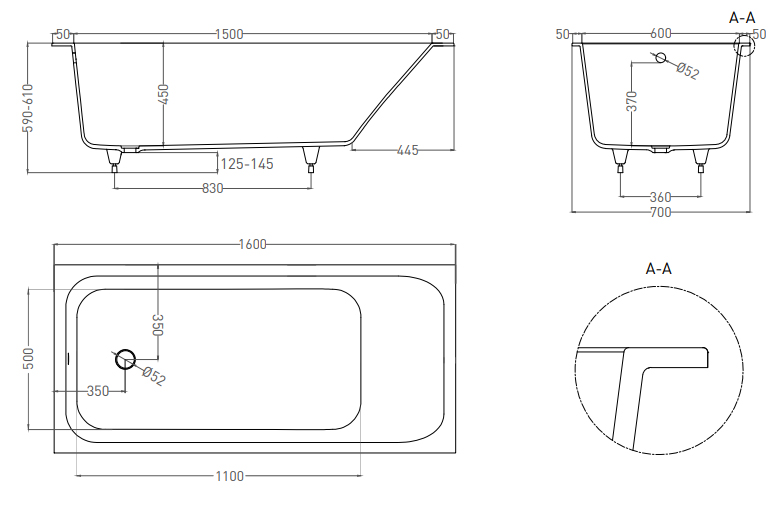 Ванна из искусственного камня Salini Orlanda 160х70 (S-Sense) белый глянец 102015G
