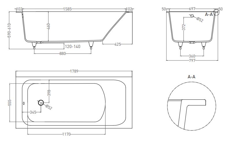 | Оснащение | Ванна, регулируемые ножки |