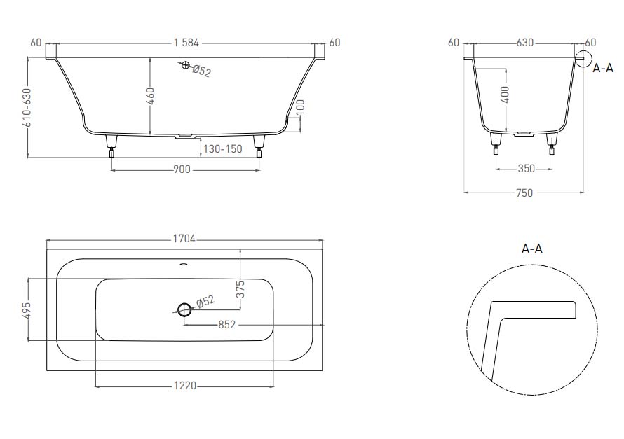 Ванна из искусственного камня Salini Orlanda Axis 170х75 (S-Sense) глянец 103213G