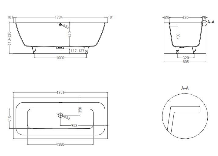 Ванна из искусственного камня Salini Orlanda Axis 190х80 (S-Sense) белый глянец 103211G