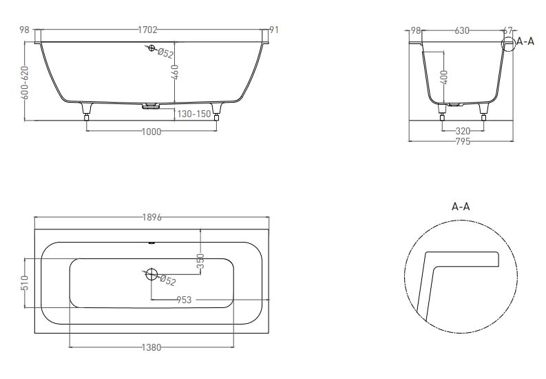 | Оснащение | Регулируемые ножки, интегрированный слив-перелив, сифон, донный клапан Click-Clack |