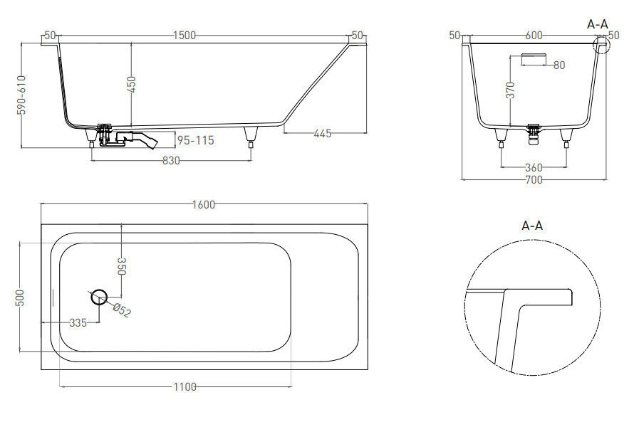 | Оснащение | Регулируемые ножки, интегрированный слив-перелив, сифон, донный клапан Click-Clack в цвет ванны |