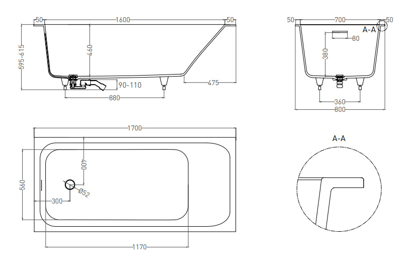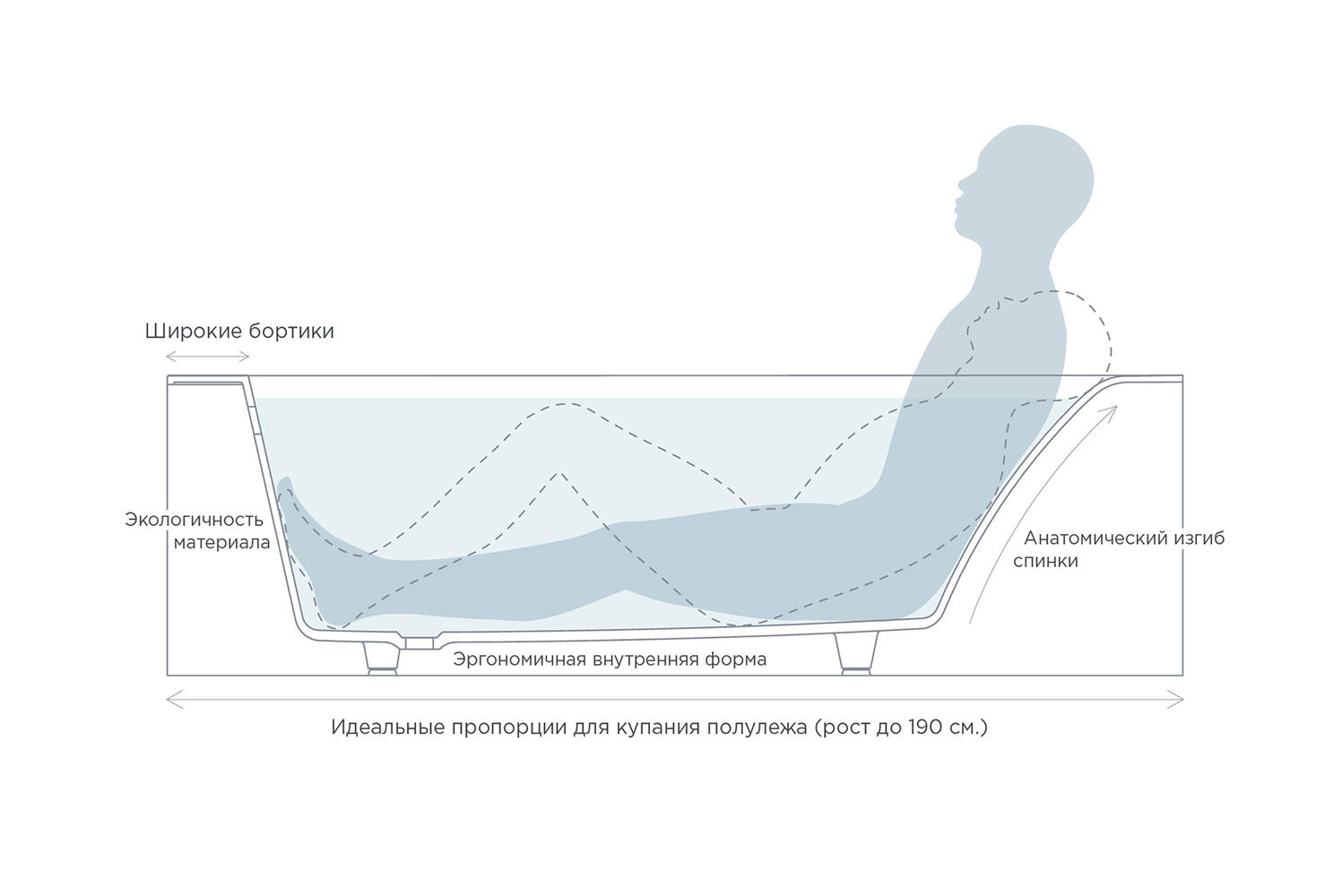 | Оснащение | Регулируемые ножки, интегрированный слив-перелив, сифон, донный клапан Click-Clack в цвет ванны |