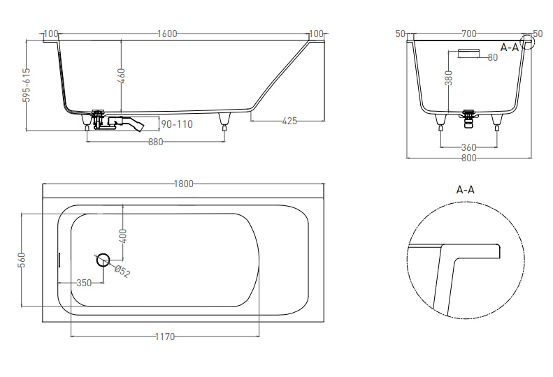 | Оснащение | Регулируемые ножки, интегрированный слив-перелив, сифон, донный клапан Click-Clack в цвет ванны |