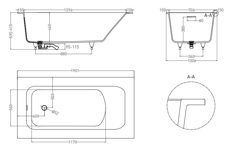 | Оснащение | Регулируемые ножки, интегрированный слив-перелив, сифон, донный клапан Click-clack в цвет ванны |