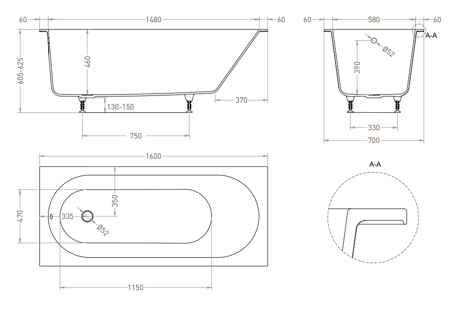 Ванна может быть выполнена в материалах S-Sense (глянцевая или матовая поверхность на выбор) и S-Stone (только матовое исполнение). Кроме того, для модели допустима овальная модификация, обеспечивающая максимально эстетичный вид изделия.