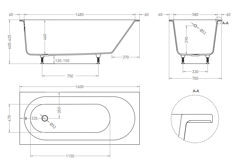 Модель с классическими круглыми отверстиями для слива и перелива предназначена для полного или частичного встраивания. Эргономичная конструкция ванны по праву считается одной из самых комфортных в использовании. Традиционный дизайн и универсальная форма модели ORNELLA удачно впишутся в интерьеры как классических, так и современных ванных комнат.