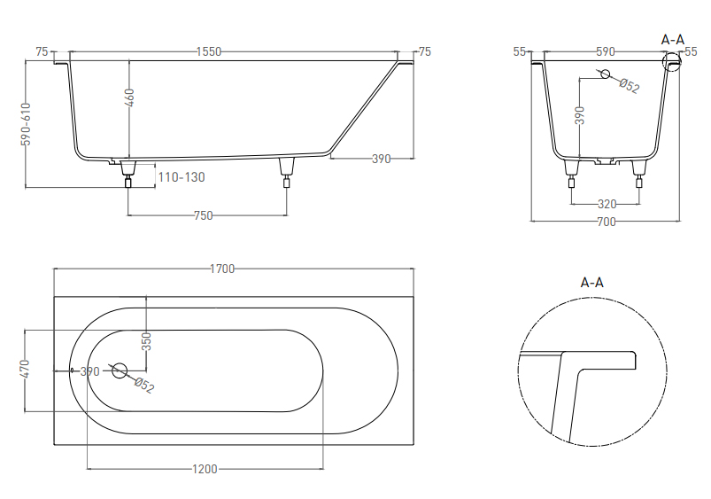 Модель с классическими круглыми отверстиями для слива и перелива предназначена для полного или частичного встраивания. Эргономичная конструкция ванны по праву считается одной из самых комфортных в использовании. Традиционный дизайн и универсальная форма модели ORNELLA удачно впишутся в интерьеры как классических, так и современных ванных комнат.