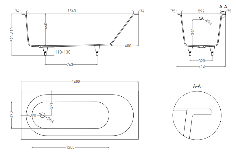 Модель с классическими круглыми отверстиями для слива и перелива предназначена для полного или частичного встраивания. Эргономичная конструкция ванны по праву считается одной из самых комфортных в использовании. Традиционный дизайн и универсальная форма модели ORNELLA удачно впишутся в интерьеры как классических, так и современных ванных комнат.