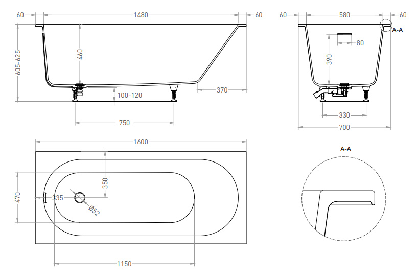 Модель предназначена для полного или частичного встраивания. Эргономичная конструкция ванны по праву считается одной из самых комфортных в использовании. Традиционный дизайн и универсальная форма модели ORNELLA удачно впишутся в интерьеры как классических, так и современных ванных комнат.