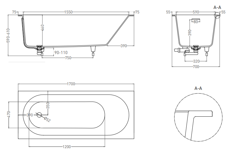 Модель предназначена для полного или частичного встраивания. Эргономичная конструкция ванны по праву считается одной из самых комфортных в использовании. Традиционный дизайн и универсальная форма модели ORNELLA удачно впишутся в интерьеры как классических, так и современных ванных комнат.