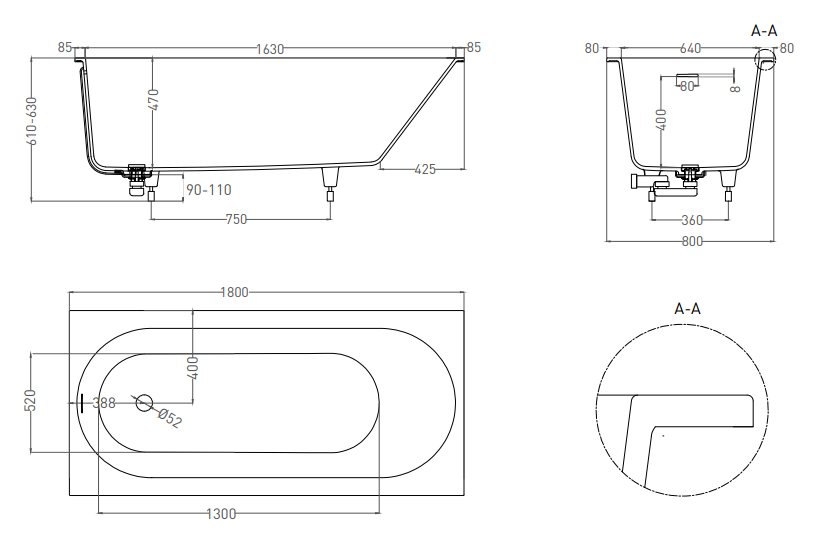 | Оснащение | Регулируемые ножки, интегрированный слив-перелив, сифон, донный клапан Click-Clack в цвет ванны |