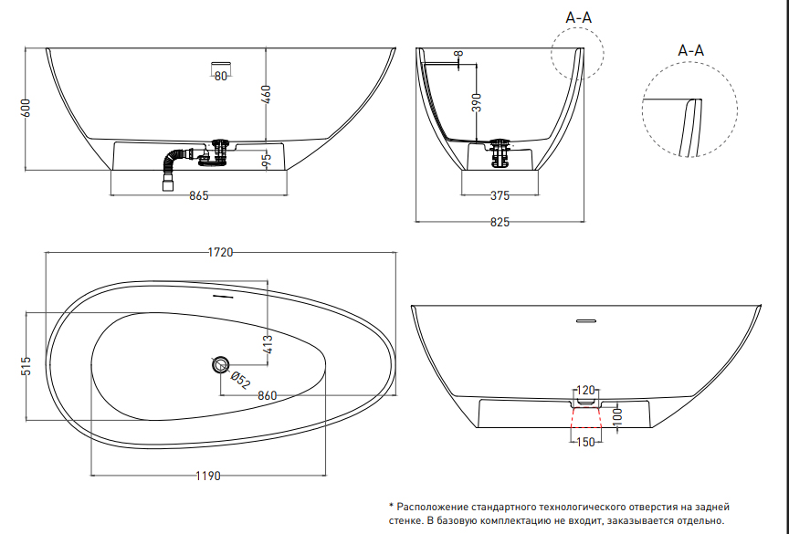 | Оснащение | Интегрированный слив-перелив, сифон, донный клапан Click-Clack в цвете ванны |