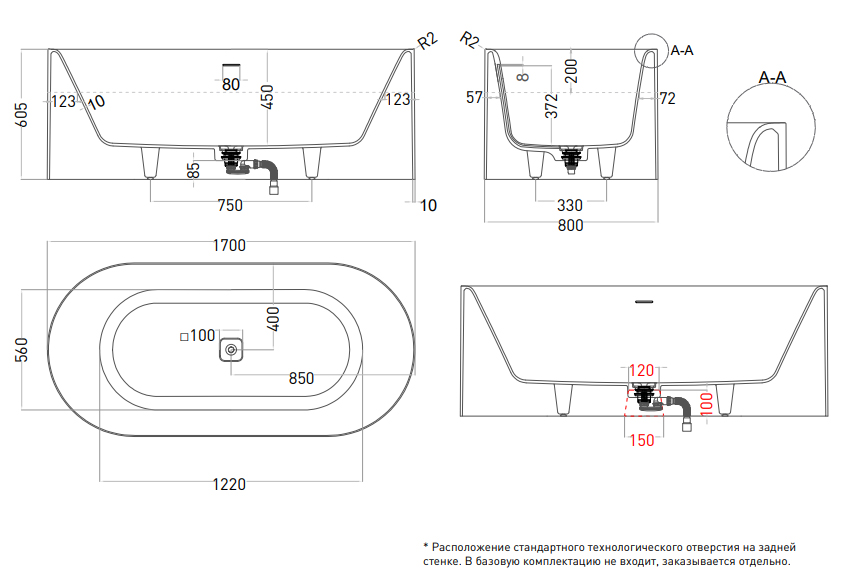 | Оснащение | Интегрированный слив-перелив, сифон, донный клапан Click-Clack, накладка на слив, ножки |