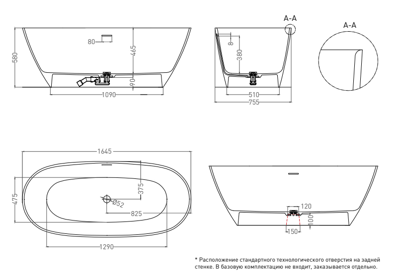 | Оснащение | Интегрированный слив-перелив, сифон, донный клапан Click-Clack в цвета ванны |