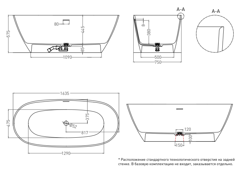 | Оснащение | Интегрированный слив-перелив, сифон, донный клапан Click-Clack в цвета ванны |