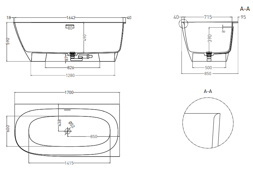 | Оснащение | Интегрированный слив-перелив, сифон, донный клапан Click-Clack в цвета ванны |