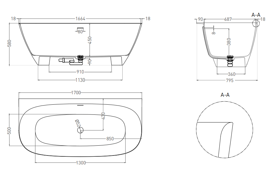 | Оснащение | Интегрированный слив-перелив, сифон, донный клапан Click-Clack в цвета ванны |