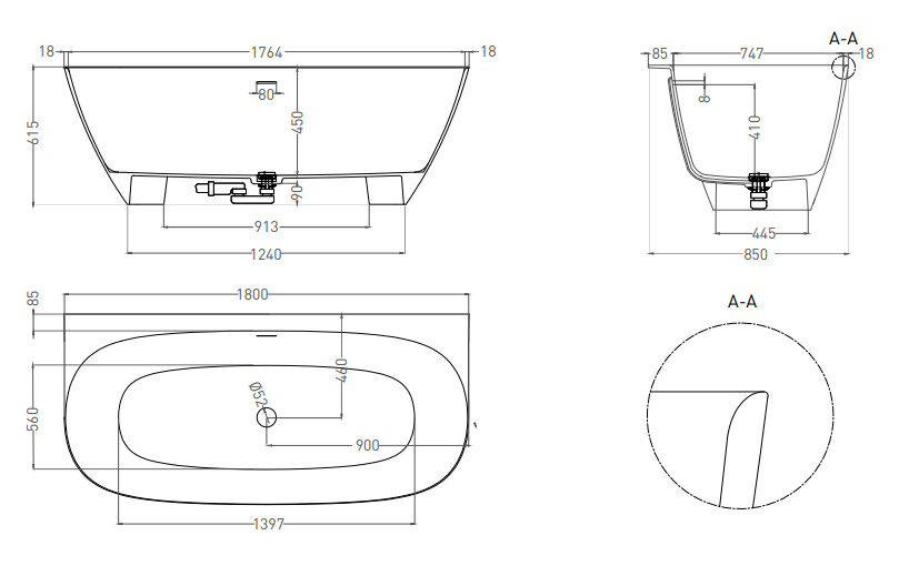 | Оснащение | Интегрированный слив-перелив, сифон, донный клапан Click-Clack в цвета ванны |
