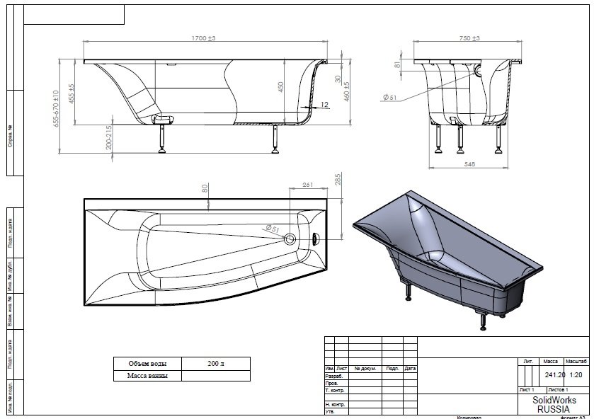 Ванна из литьевого мрамора Astra-Form Скат 170х75 см, с ножками L/R 01010014/ 01010015