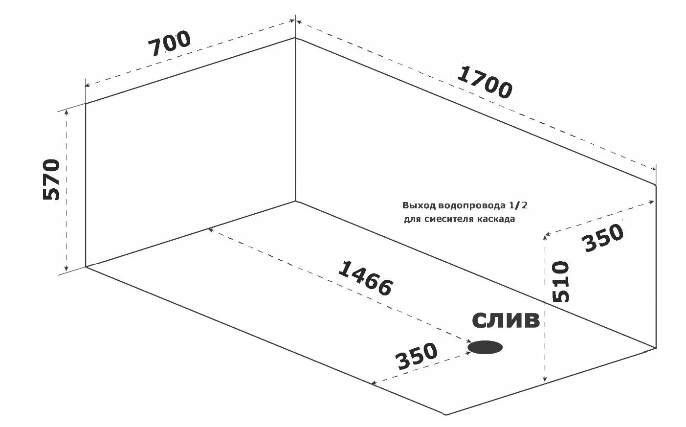 | Оснащение | Ванна+ножки/ отдельно заказывается слив 580 мм (сл00214) |
