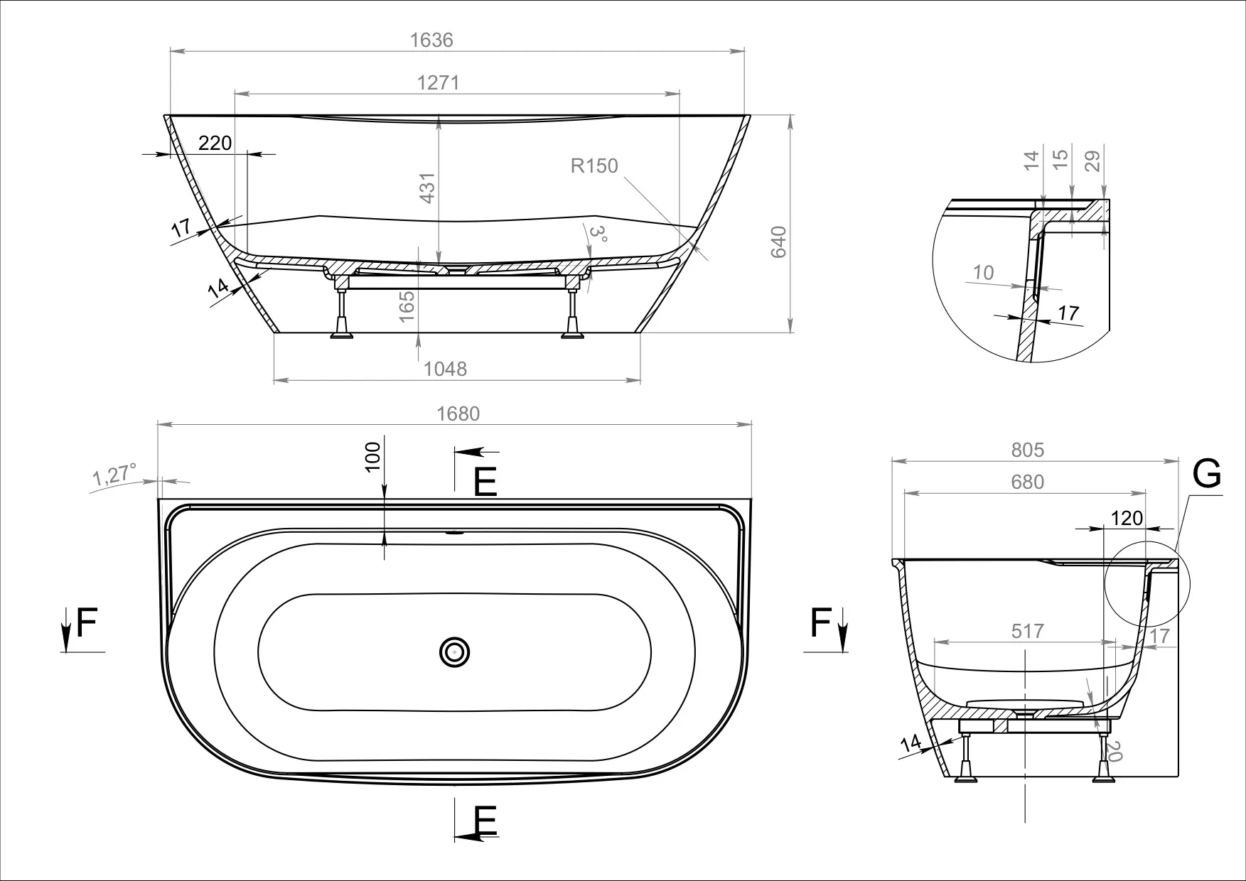 | Оснащение | Ванна/ отдельно заказывается слив 580 мм (сл00214) |