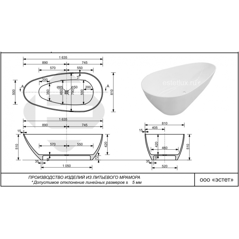| Материал | Литьевой мрамор |