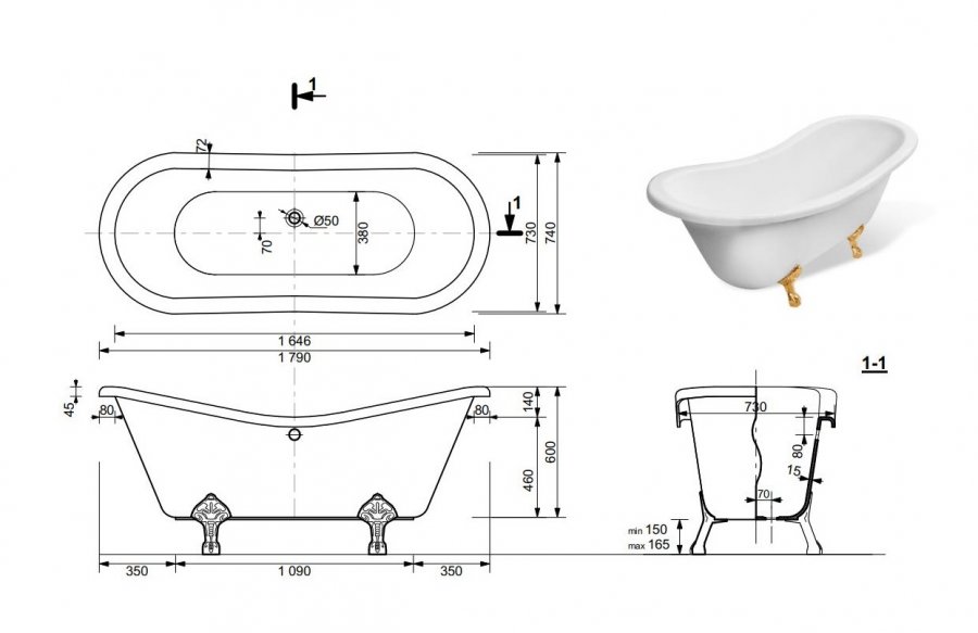 Ванна Эстет Бостон 180x74