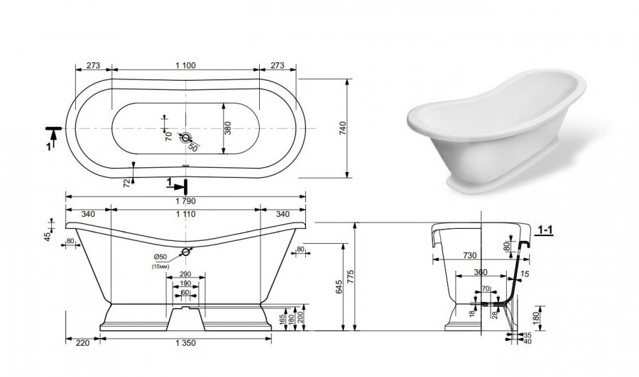 Ванна Эстет Бостон 180x74 на подиуме