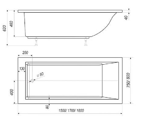 Ванна Эстет Дельта 150x75