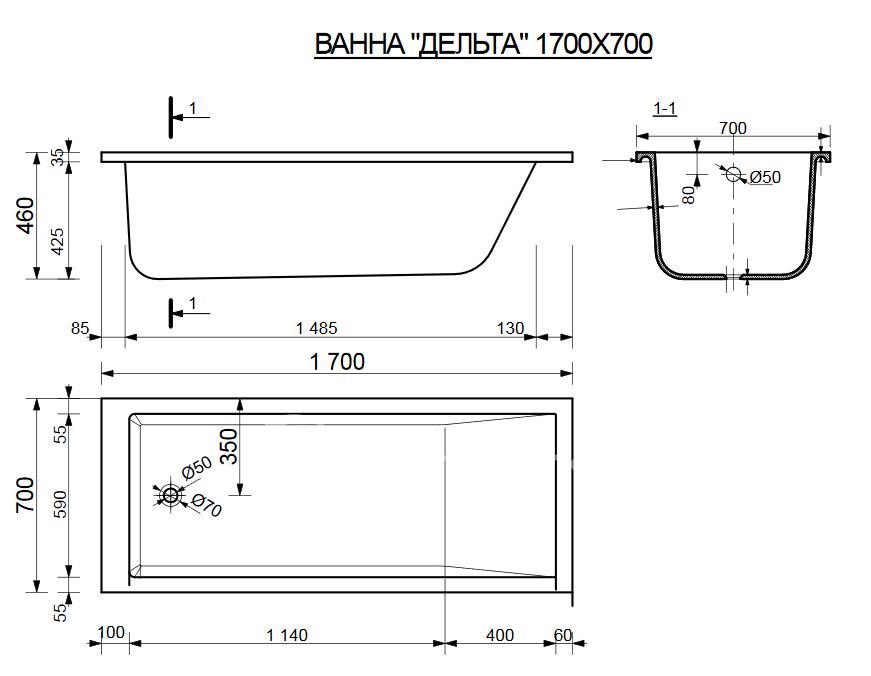 Ванна Эстет Дельта 170x70