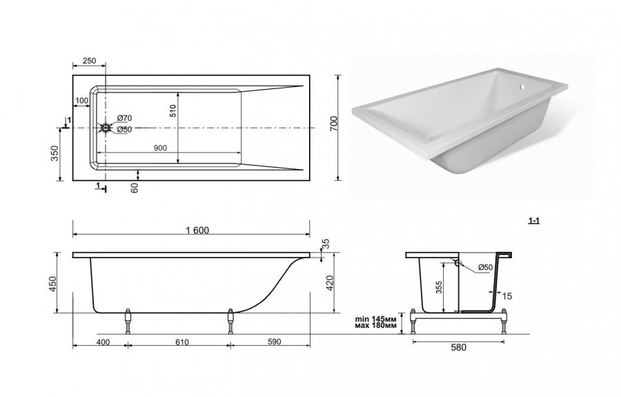 Ванна из литьевого мрамора Эстет Дельта А Silk 160x70 см белый матовый ФР-00014532